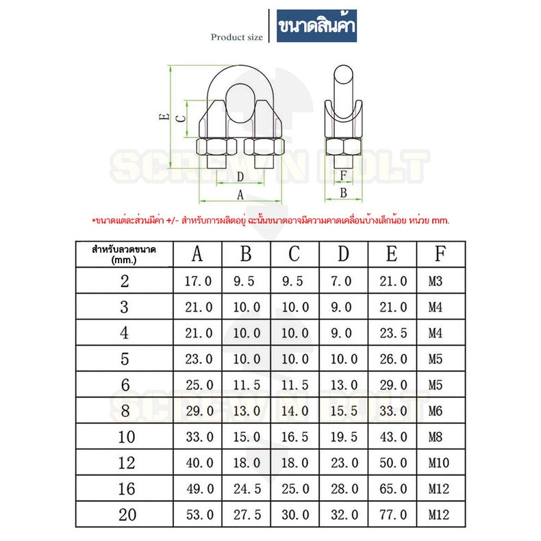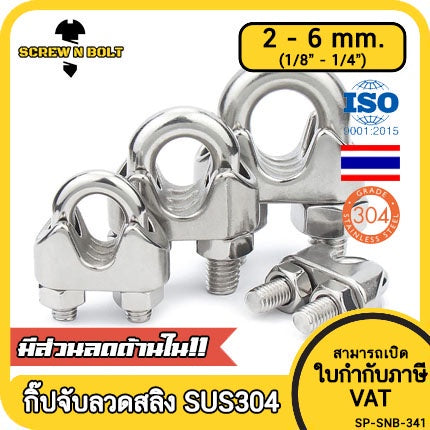 #กิ๊ปจับลวดสลิง #สแตนเลส 304 #รัดสลิง ล็อคลวดสลิง #2mm. 3mm.(5/16) 4mm.(5/32) 6mm.(1/4)