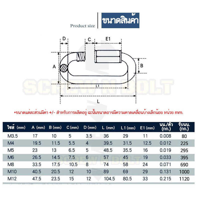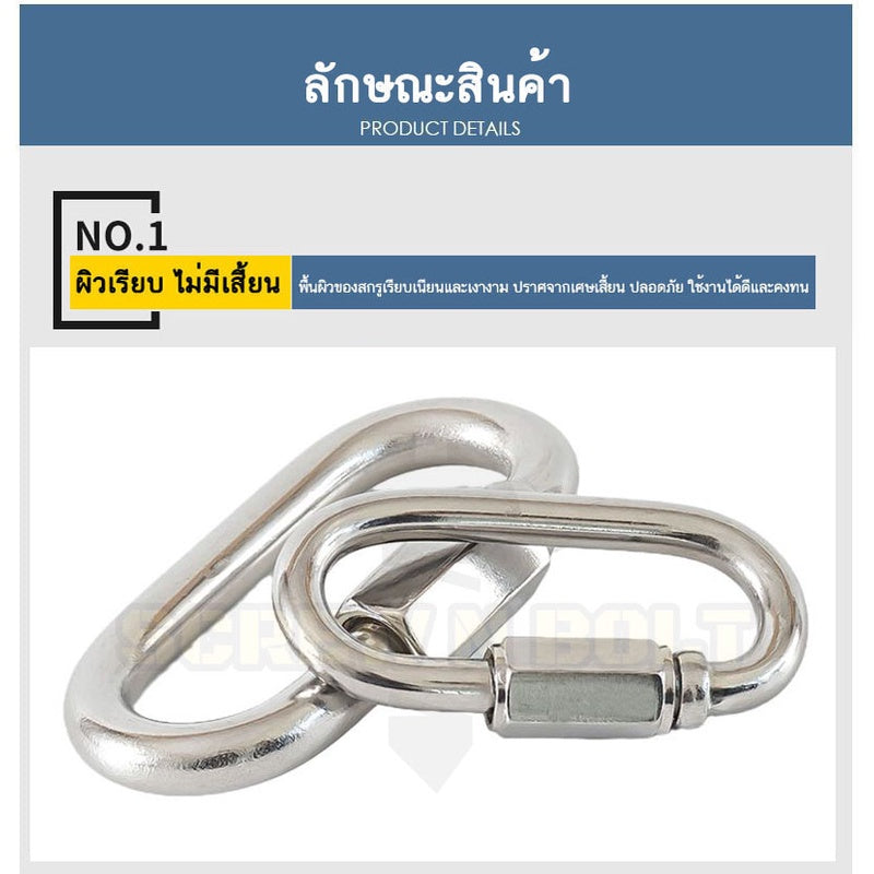 🔍 ชื่อรายการสินค้า : ควิกลิงค์ ข้อต่อ ล็อค โซ่ เชื่อมต่อ สลิง สแตนเลส 304 - 12mm.(1/2") 14mm.(9/16")