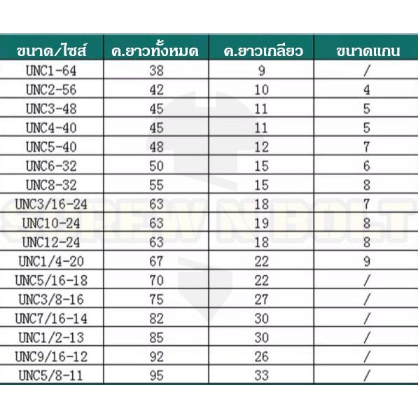 🟨 A. การคำนวณขนาดรูเจาะ ""เกลียวอเมริกัน:UNC"" หาได้จากสูตร
