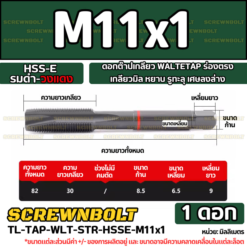 WALTETAP ร่องตรง เกลียวมิล หยาบ รูทะลุ เศษลงล่าง HSS-E รมดำ-วงแดง M1.2 - M12 / JIS Straight Flute Tap คือดอกต๊าปเกลียวคุณภาพสูงที่ออกแบบมาเพื่อตอบสนองความต้องการของช่างมืออาชีพ 🔧 ด้วยคุณสมบัติพิเศษที่หลากหลาย ทำให้เป็นตัวเลือกที่ยอดเยี่ยมสำหรับงานทำเกลียวในอุตสาหกรรมต่างๆ
