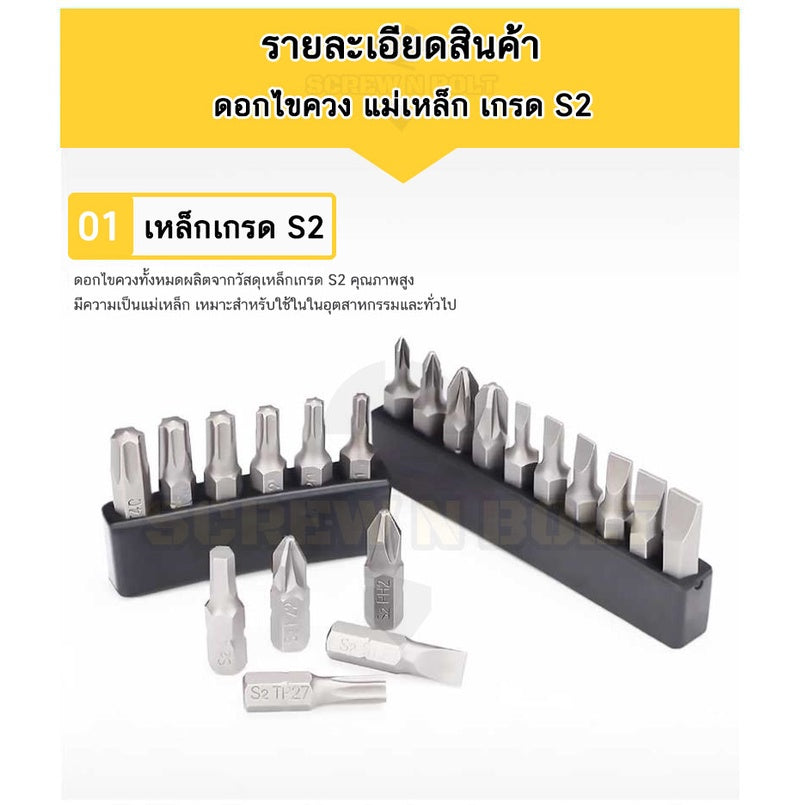 👍 ดอกไขควงทั้งหมดผลิตจากวัสดุเหล็กเกรด S2 คุณภาพสูง เหมาะสำหรับใช้ในในอุตสาหกรรมและทั่วไป