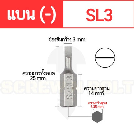 🔍 ชื่อรายการสินค้า : ดอกไขควง แบน ลบ (-) 6.35(1/4") x 25 mm. เหล็กเกรด S2 SL3 SL4 SL4.5 SL5 SL6 SL7