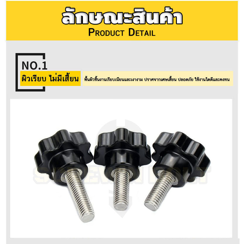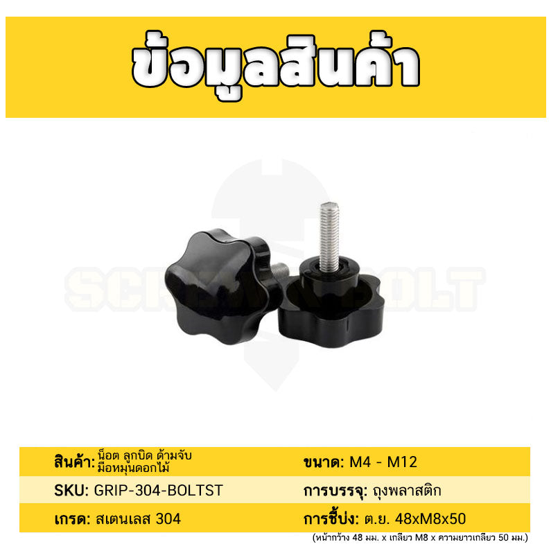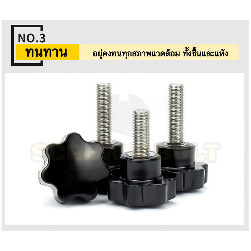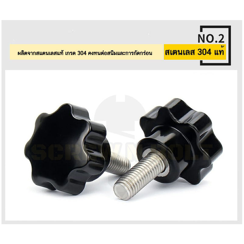 น็อต ลูกบิด ด้ามจับ มือหมุนดอกไม้ สแตนเลส 304 กว้าง 32-38 มม. M8 M10 / STAR GRIP KNOB BOLT SUS304