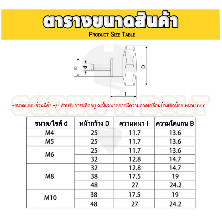 🔍 ชื่อรายการสินค้า : น็อต ลูกบิด ด้ามจับ มือหมุนดอกไม้ สแตนเลส 304 กว้าง 32-38 มม. M8 M10