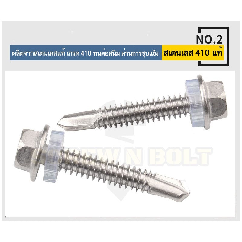 🔍 ชื่อรายการสินค้า : น็อต สกรู ยิงหลังคา+แหวนกันซึม สแตนเลส 410 ปลายสว่าน #12 #14