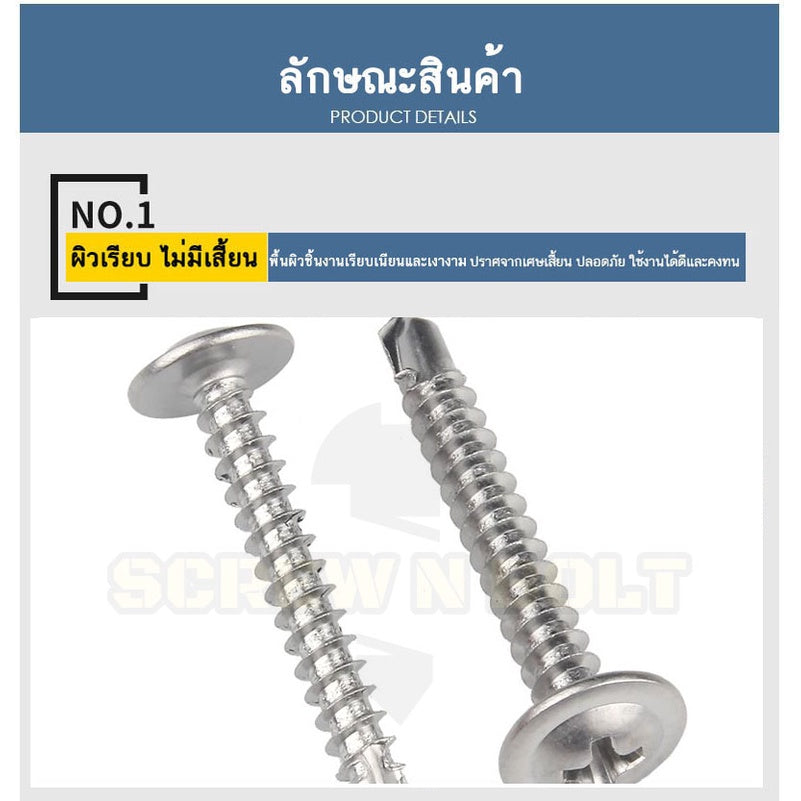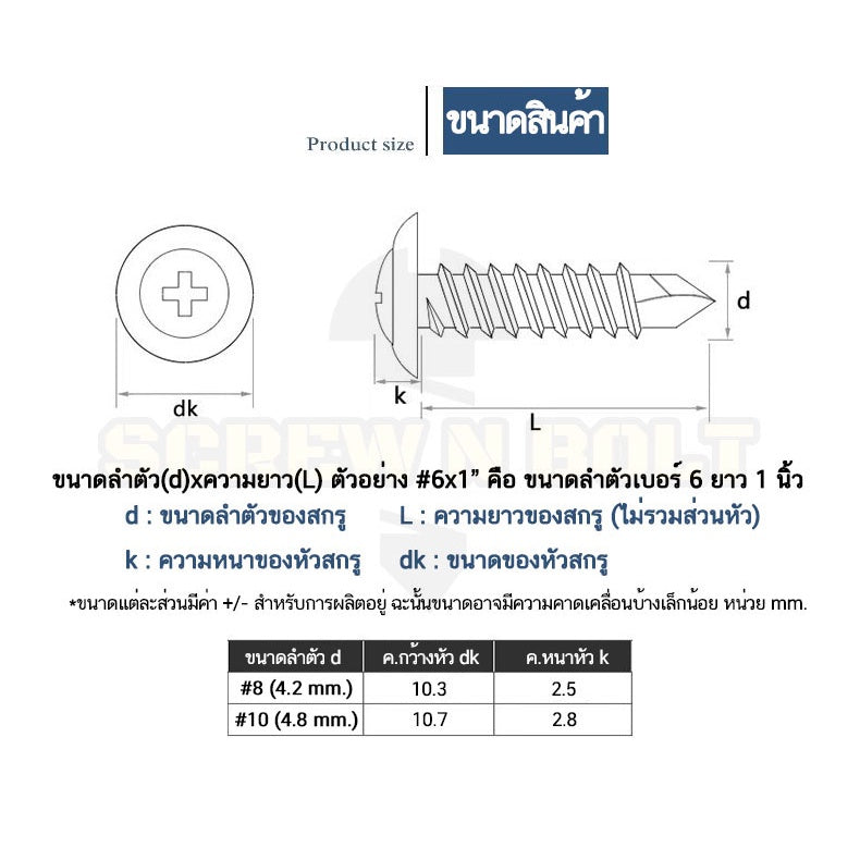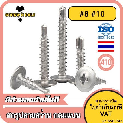 🔍 ชื่อรายการสินค้า : น็อต สกรู หัวกลมแบน แฉก สแตนเลส 410 ปลายสว่าน #8 #10