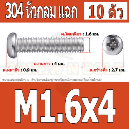 🔍 ชื่อรายการสินค้า : น๊อตสกรูเกลียวมิล สแตนเลส 304 หัวกลมแฉก P+ ไซส์ M1.6