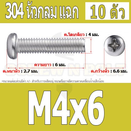 🔍 ชื่อรายการสินค้า : น๊อตสกรูเกลียวมิล สแตนเลส 304 หัวกลมแฉก P+ ไซส์ M4