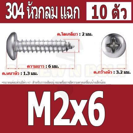🔍 ชื่อรายการสินค้า : น๊อตสกรูเกลียวปล่อย สแตนเลส 304 หัวกลมแฉก P+ ไซส์ M2 M2.3