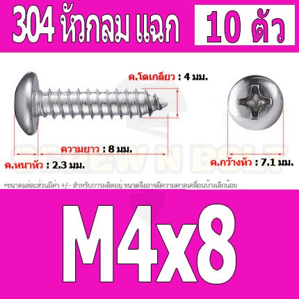 🔍 ชื่อรายการสินค้า : น๊อตสกรูเกลียวปล่อย สแตนเลส 304 หัวกลมแฉก P+ ไซส์ M4