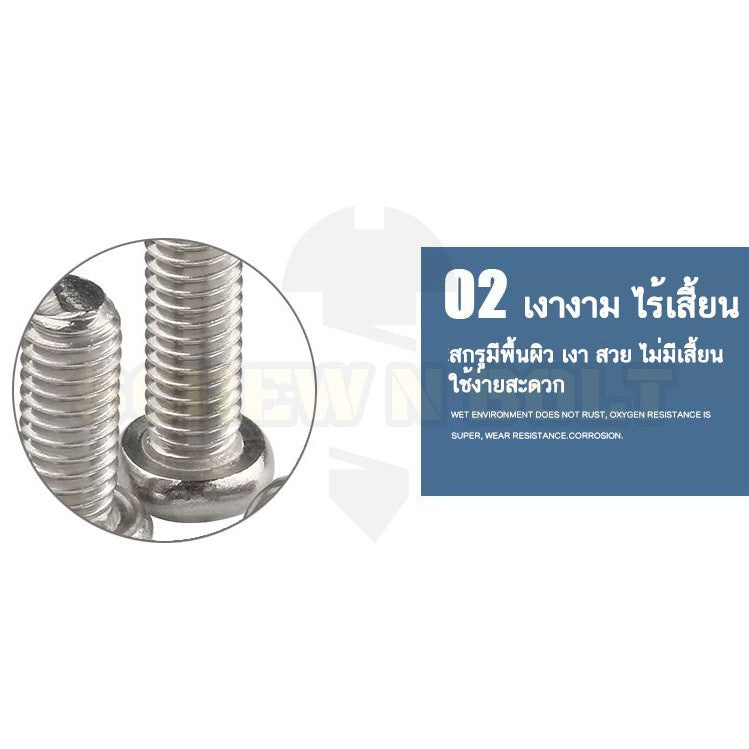 👍 พื้นสัมผัสเรียบ ไม่มีเสี้ยน - พื้นผิวของสกรูเรียบเนียนและเงางาม ปราศจากเศษเสี้ยน ปลอดภัย ใช้งานได้ดีและคงทน