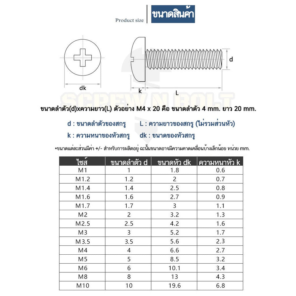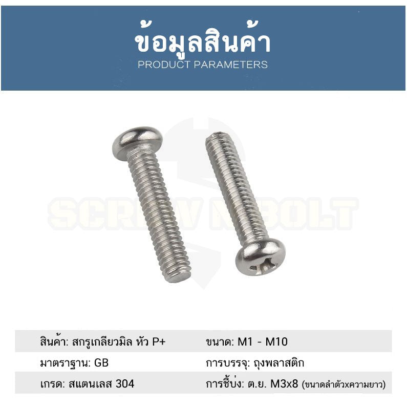 🔍 ชื่อรายการสินค้า : น๊อตสกรูเกลียวมิล สแตนเลส 304 หัวกลมแฉก P+ ไซส์ M1 M1.2 M1.4