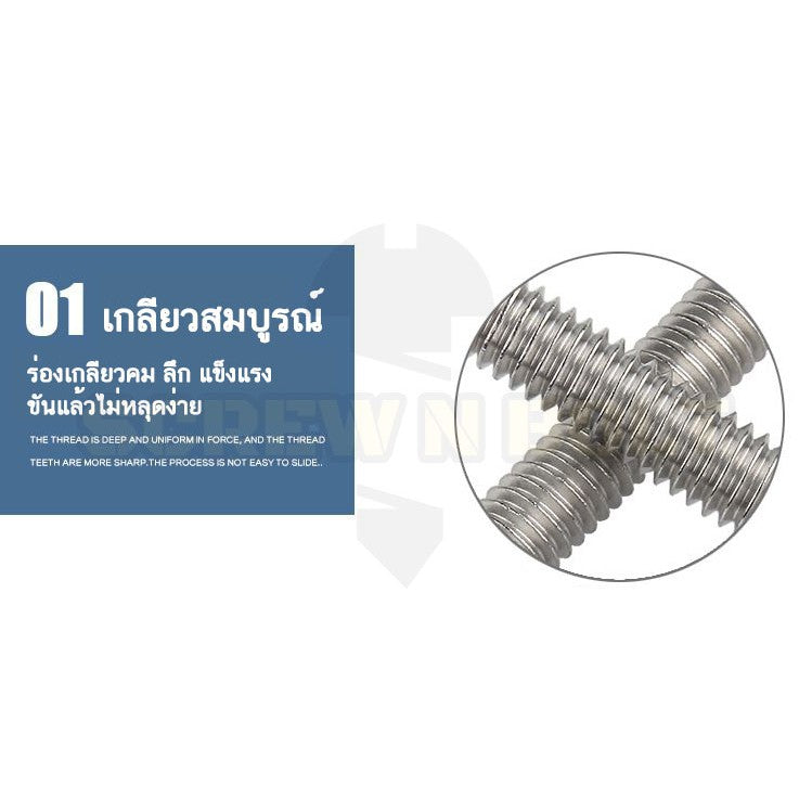 👍 เกลียวได้มาตราฐาน - เกลียวเต็มแข็งแรง เกลียวไม่ล้มหรือเป็นขุย รับแรงขันได้ดี ไม่คลายง่าย