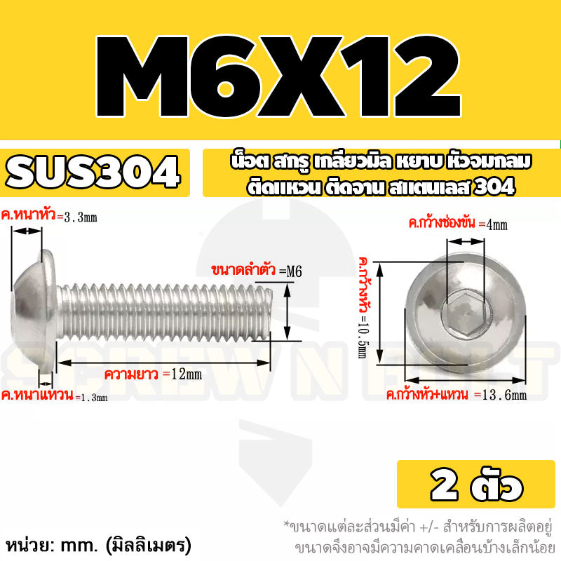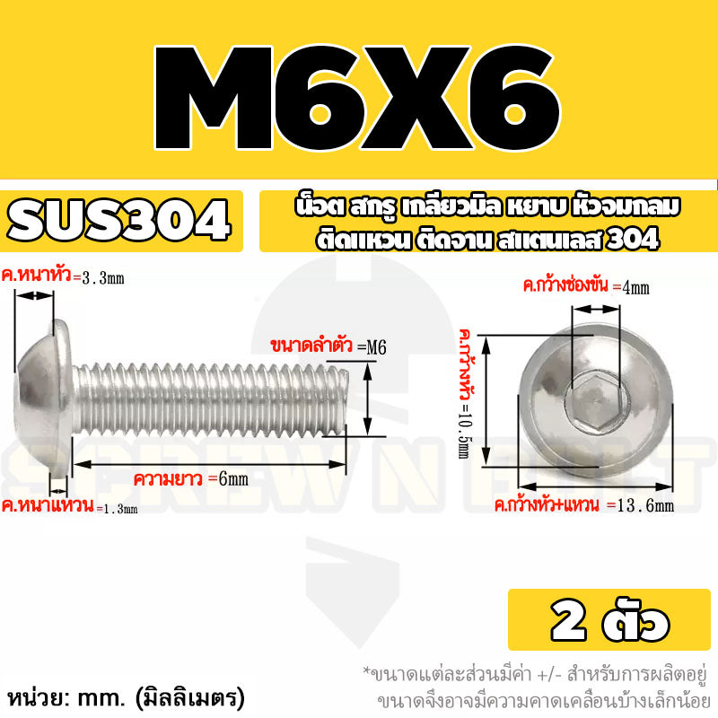 #น็อต สกรู #สเตนเลส 304 #หัวจมกลม ติดแหวน ติดจาน #M6 M8 M10
