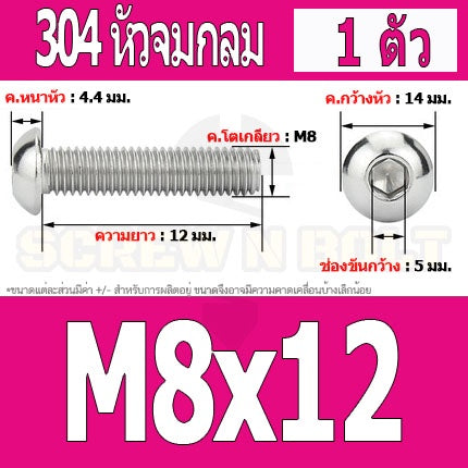 น็อต สกรู หัวจมกลม สแตนเลส 304 เกลียวมิล หยาบ M8 / Button Head Hexagon Socket Machine Screw SUS304 M8