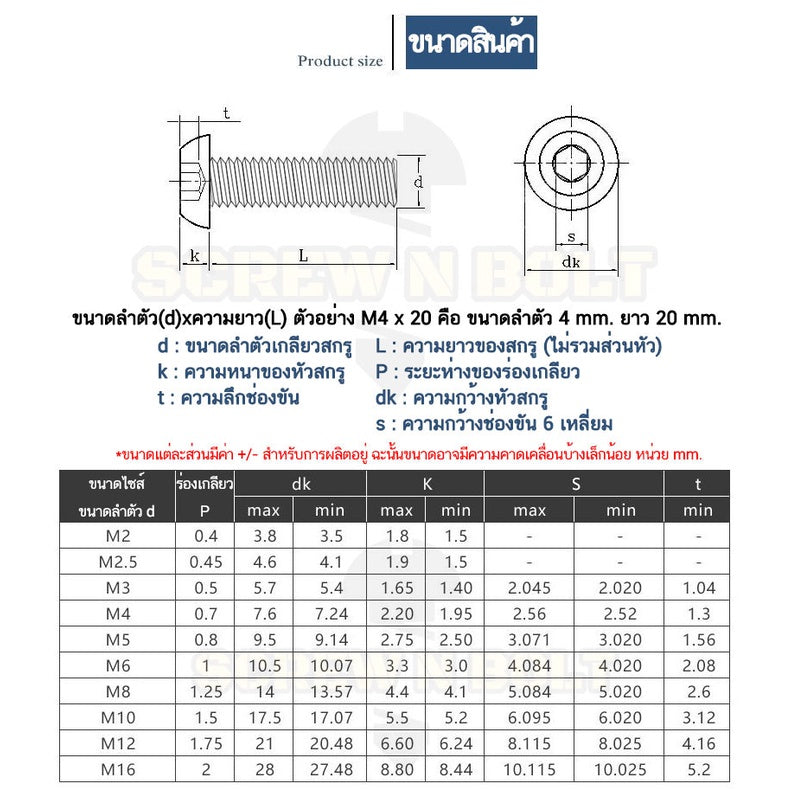 #น็อต สกรู #เหล็กแข็ง 10.9 #หัวจมกลม 6 เหลี่ยม #M4 M5 M6
