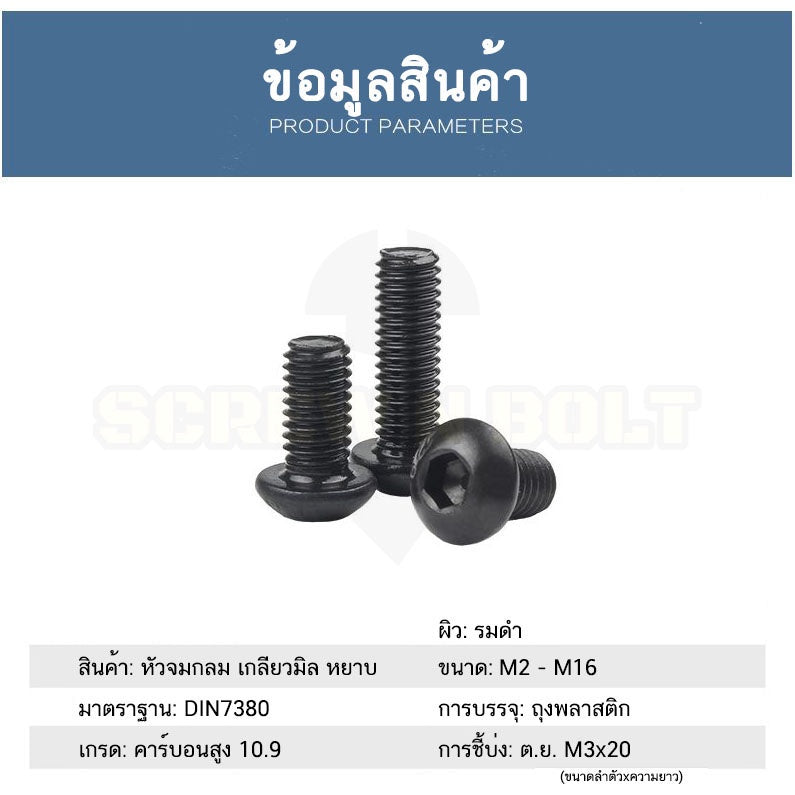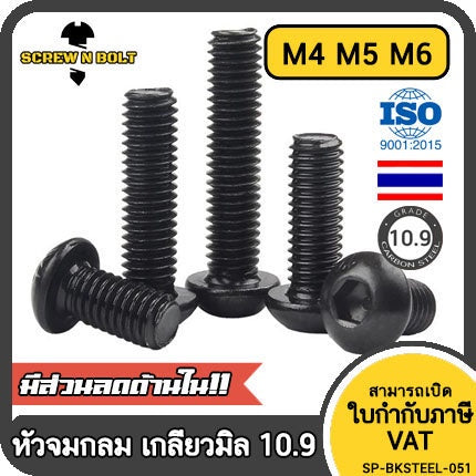 น็อต สกรู หัวจมกลม 6 เหลี่ยม เหล็กแข็ง 10.9 เกลียวมิล หยาบ M4 M5 M6 / Button Head Hex Socket Machine Screw Grade 10.9
