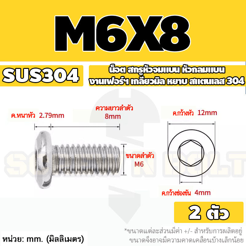 #น็อต สกรู #สแตนเลส 304 #หัวจมแบน หัวกลมแบน งานเฟอร์ฯ #M6 M8 M10