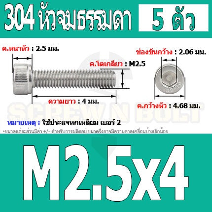 น็อต สกรู หัวจม สแตนเลส 304 เกลียวมิล ตลอด หยาบ M2.5 / Hex Socket Head Cap Machine Screw SUS304 M2.5