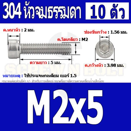 น็อต สกรู หัวจม สแตนเลส 304 เกลียวมิล ตลอด หยาบ M2 / Hex Socket Head Cap Machine Screw SUS304 M2