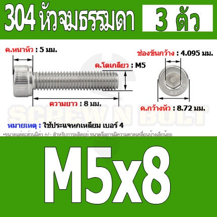 🔍 ชื่อรายการสินค้า : น๊อตสกรูเกลียวมิล สแตนเลส 304 หัวจม ไซส์ M5