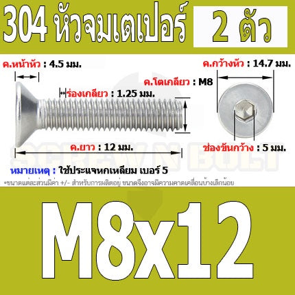 #น็อตสกรู #สแตนเลส 304 #หัวจมเตเปอร์ #ไซส์ M8