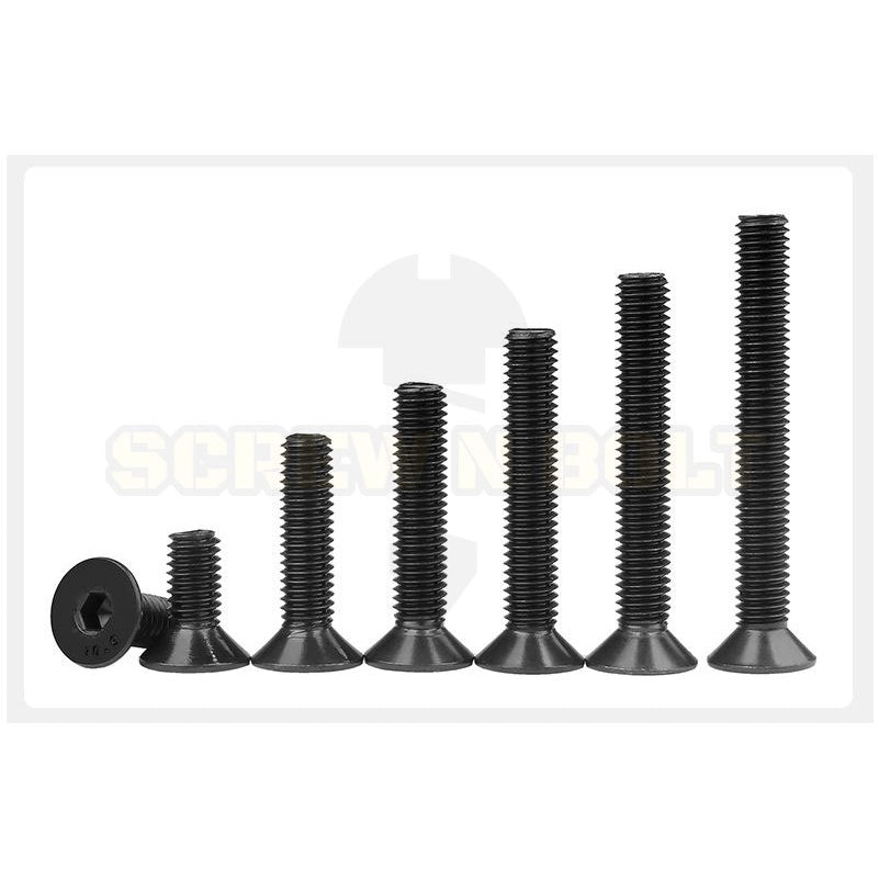 น็อต สกรู หัวจม เตเปอร์ เหล็กแข็ง 10.9 เกลียวมิล หยาบ M2 M2.5 M3 / Flat Head Hex Socket Machine Screw Grade 10.9