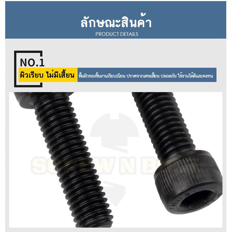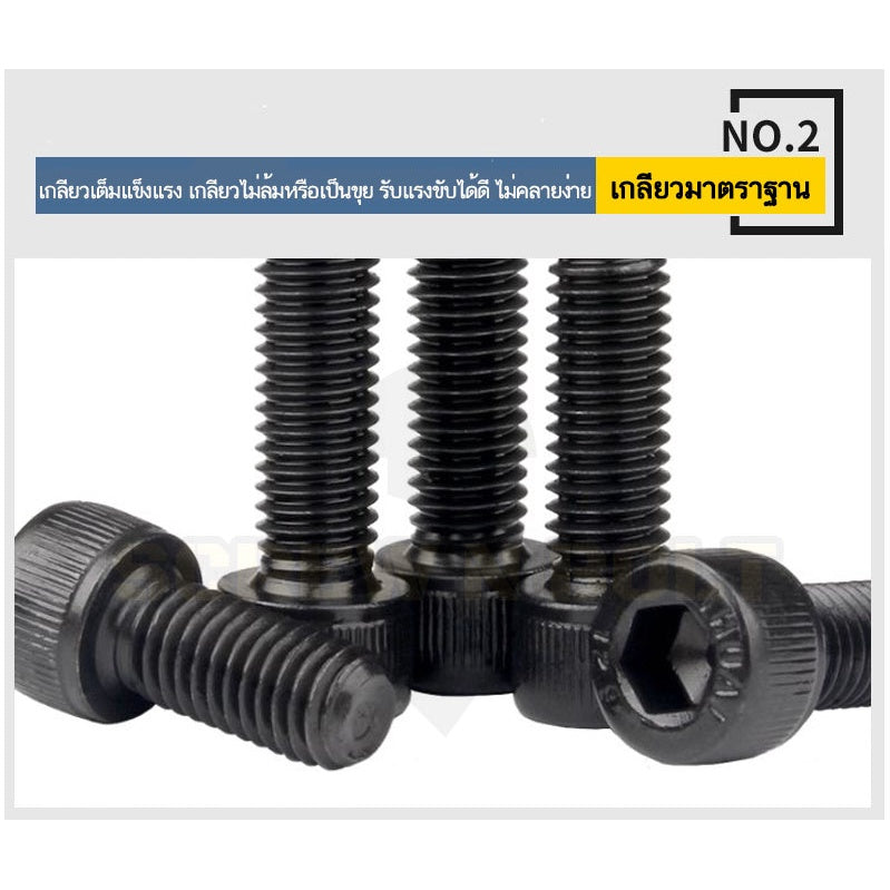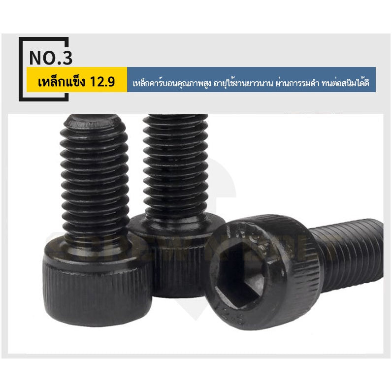 👍 คุณสมบัติเหล็กแข็ง 12.9 - ผลิตจากเหล็กคาร์บอนคุณภาพสูง มีความแข็งสูงระดับ 12.9 มีอายุการใช้งานที่ยาวนาน ผิวผ่านการรมดำเพื่อประสิทธิภาพการใช้งานและทนต่อสนิมได้ดี