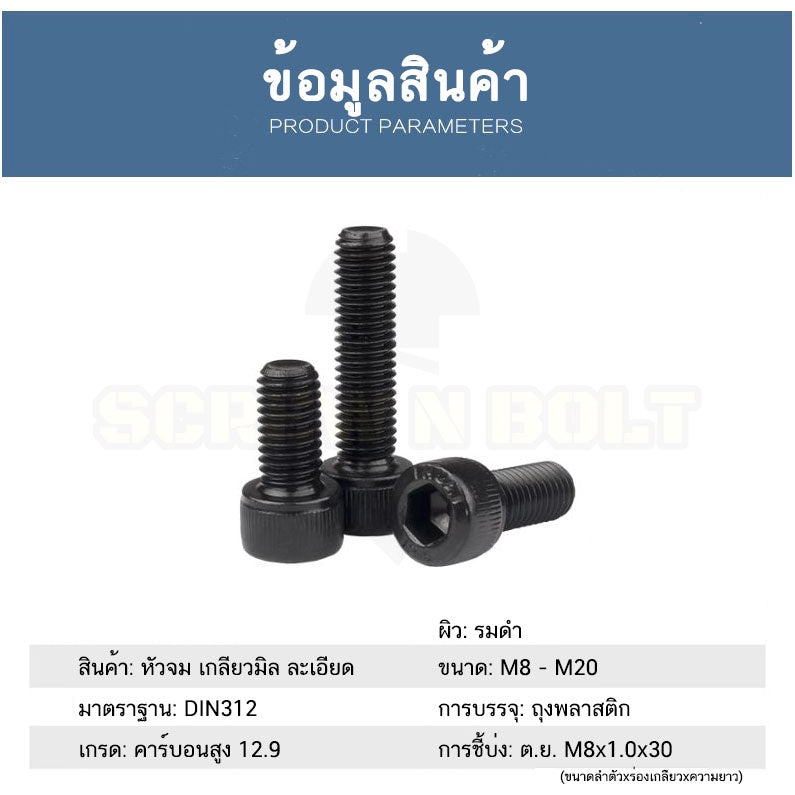 🔍 ชื่อรายการสินค้า : น็อต สกรู หัวจม 6 เหลี่ยม เหล็กแข็ง 12.9 เกลียวมิล ละเอียด M20