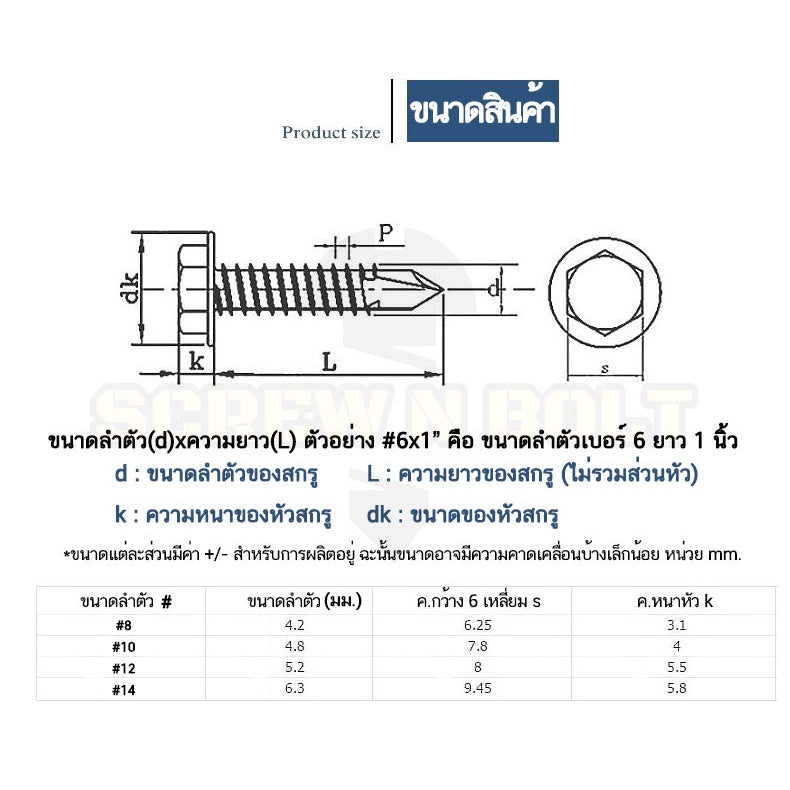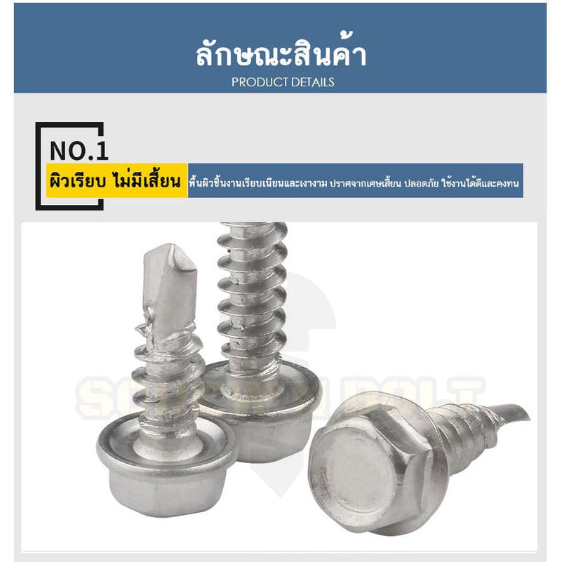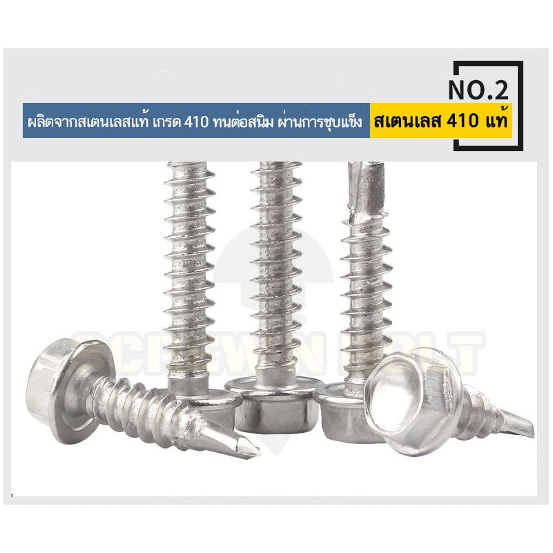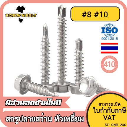 🔍 ชื่อรายการสินค้า : น็อต สกรู หัวหกเหลี่ยม สแตนเลส 410 ปลายสว่าน #8 #10