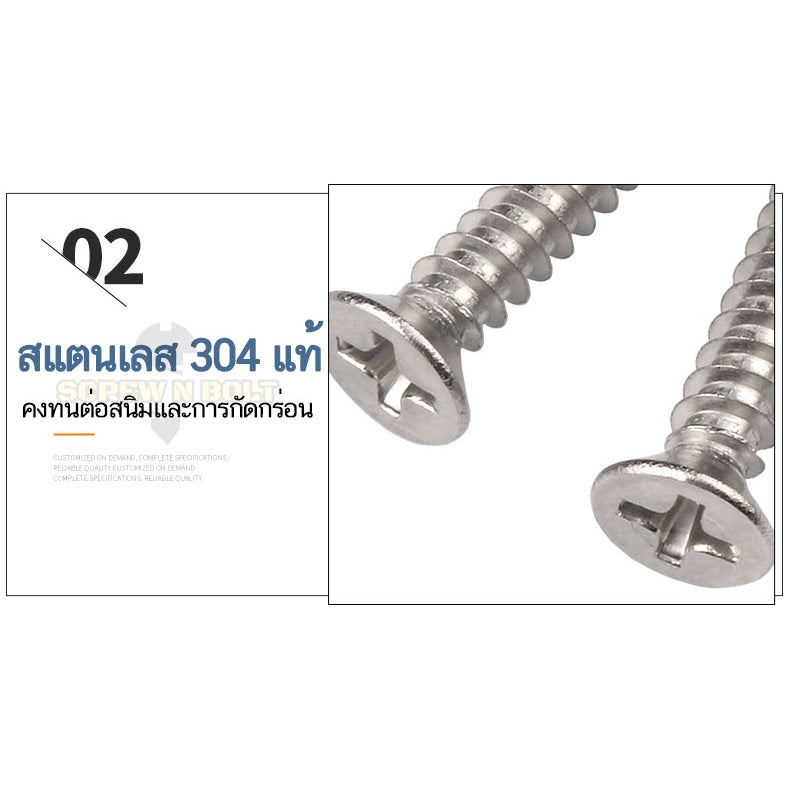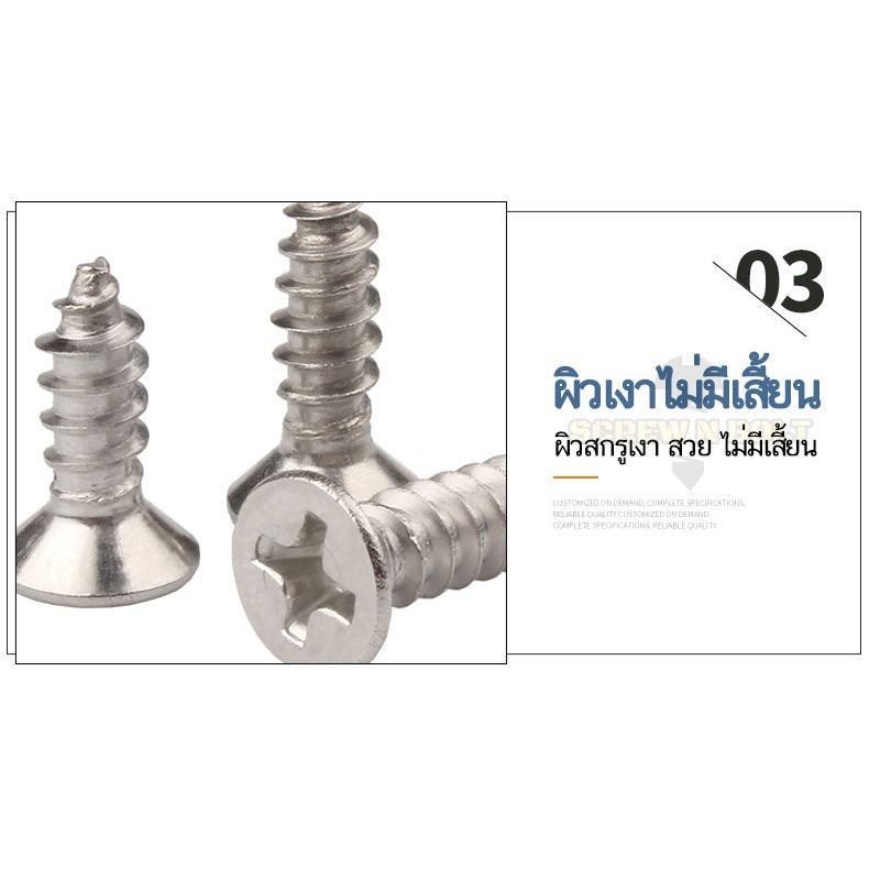 👍 พื้นสัมผัสเรียบ ไม่มีเสี้ยน - พื้นผิวของสกรูเรียบเนียนและเงางาม ปราศจากเศษเสี้ยน ปลอดภัย ใช้งานได้ดีและคงทน