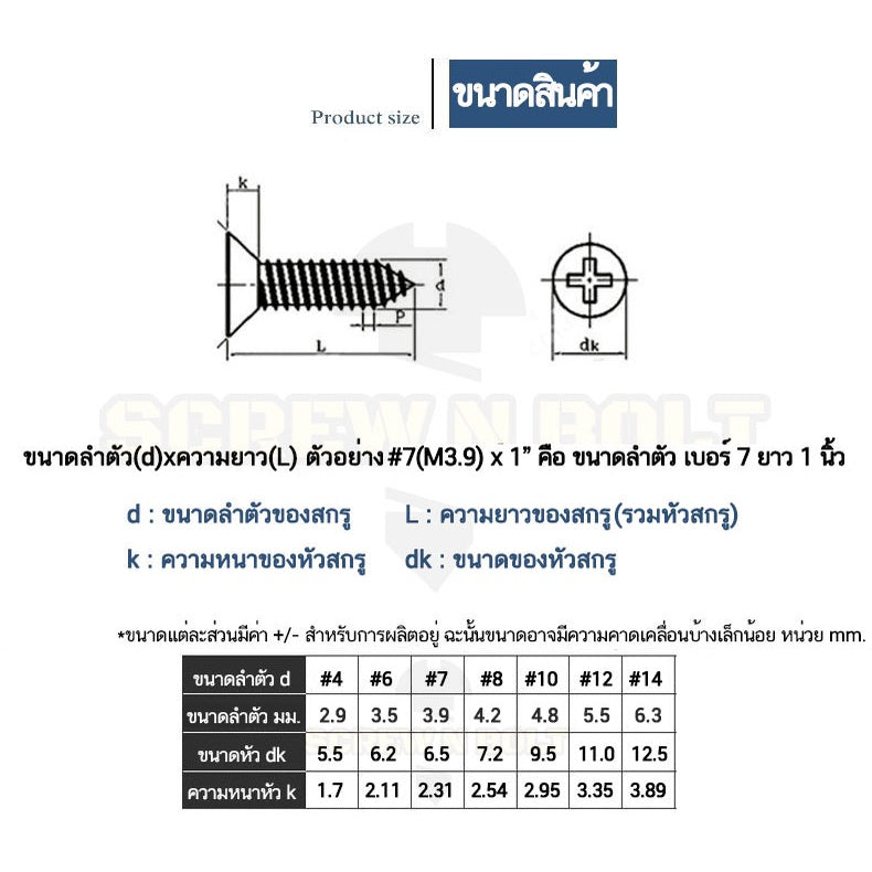 ⚙ คำแนะนำการวัดขนาดไซส์และความยาวของน๊อตสกรู ⚙