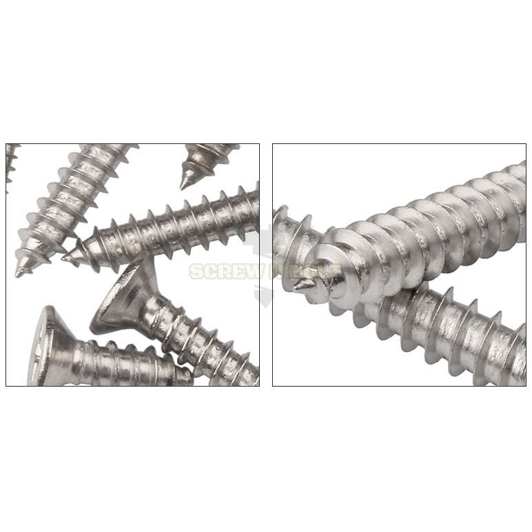 น็อต สกรู หัวเตเปอร์ หัวเรียบ แฉก F+ สแตนเลส 304 เกลียวปล่อย ปลายแหลม #7 / Flat Head Phillip Tapping Screw SUS304 #7