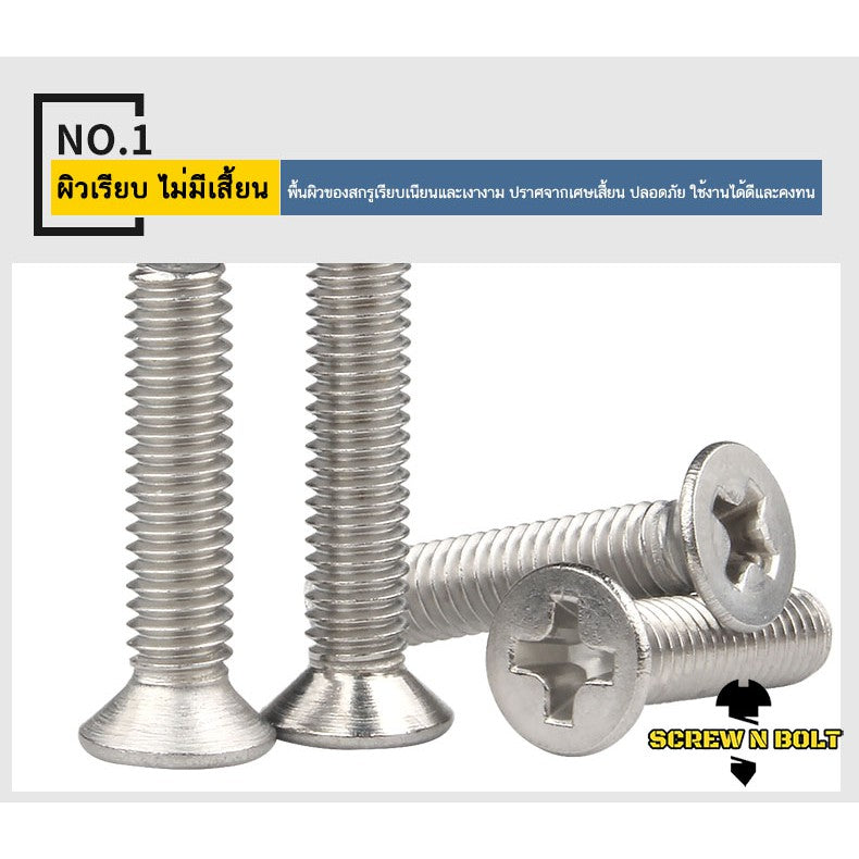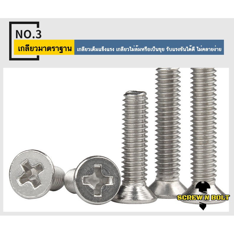 🔍 ชื่อรายการสินค้า : น๊อตสกรูเกลียวมิล สแตนเลส 304 หัวเตเปอร์แฉก F+ ไซส์ M5
