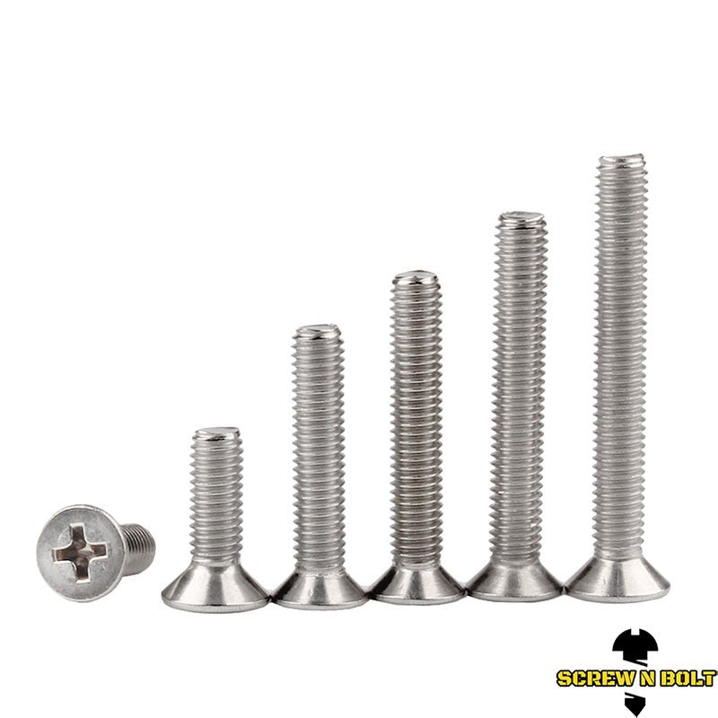 น็อต สกรู หัวเตเปอร์ แฉก F+ สแตนเลส 304 เกลียวมิล หยาบ M5 / Flat Head Phillip Machine Screw SUS304 M5