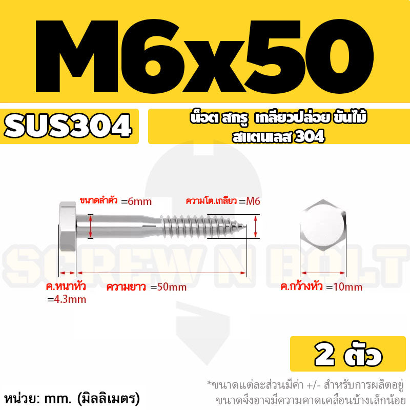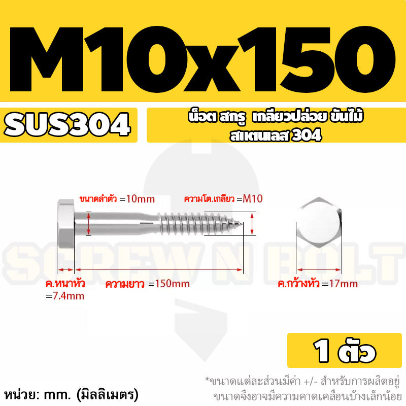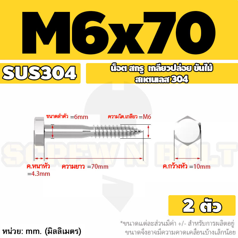 🔍 ชื่อรายการสินค้า : น็อต สกรู หัวเหลี่ยม สกรูงานไม้ ยึดไม้ สแตนเลส 304 เกลียวปล่อย ขันไม้ M6 M8 M10