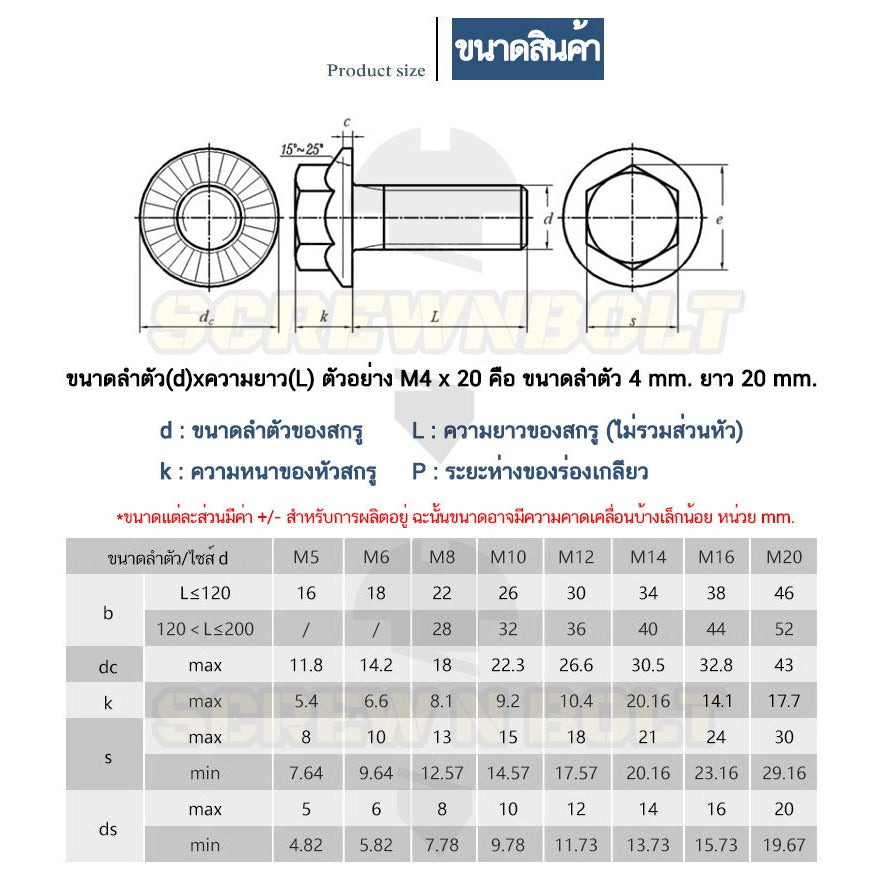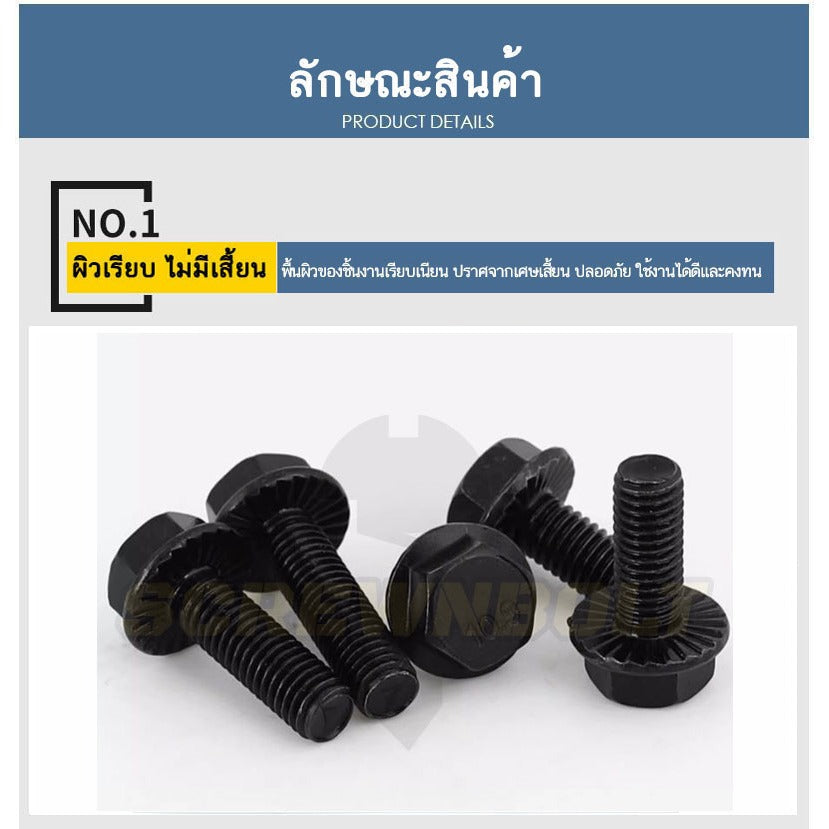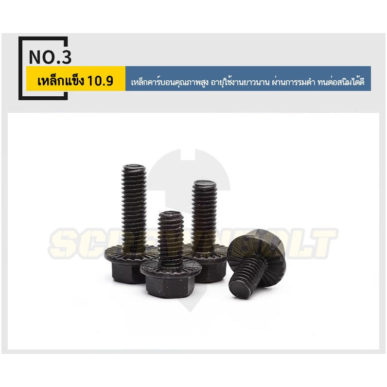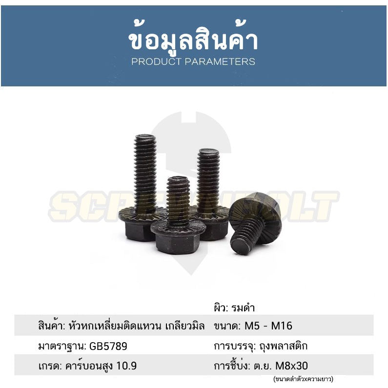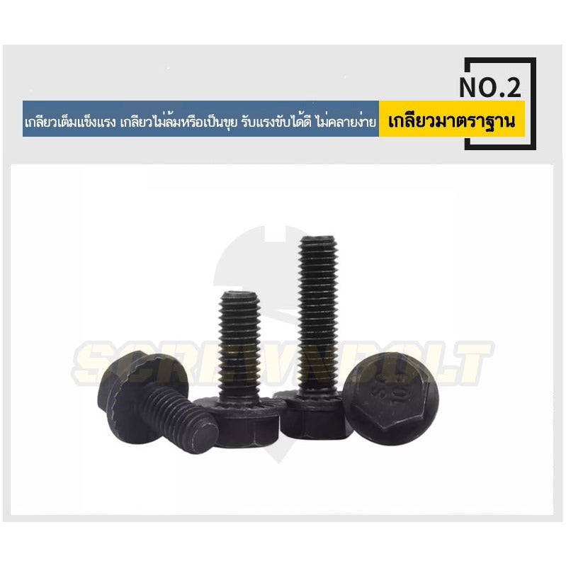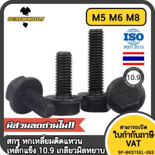 น็อต สกรู หัว หกเหลี่ยมติดแหวน เหล็กแข็ง 10.9 เกลียวมิล หยาบ M5 M6 M8 / Hexagon Flange Bolt Grade 10.9