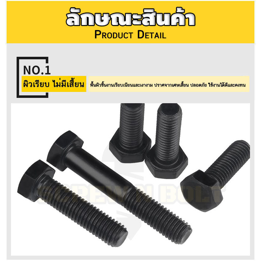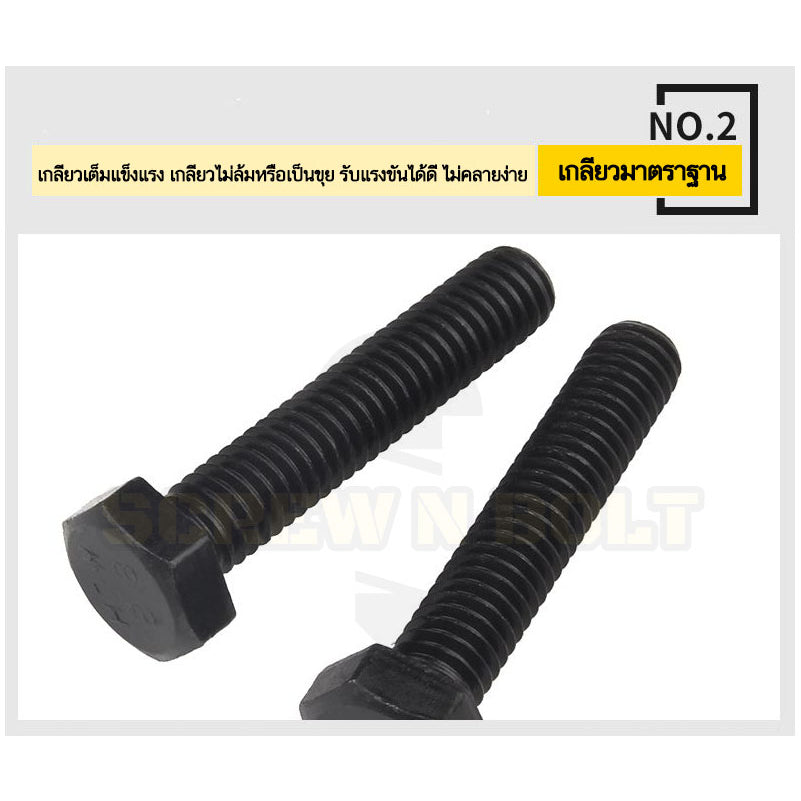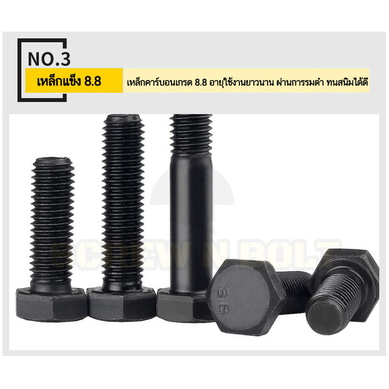 👍 คุณสมบัติเหล็กแข็ง 8.8 - ผลิตจากเหล็กคาร์บอนคุณภาพสูง มีความแข็งสูงระดับ 8.8 มีอายุการใช้งานที่ยาวนาน ผิวผ่านการรมดำเพื่อประสิทธิภาพการใช้งานและทนต่อสนิมได้ดี