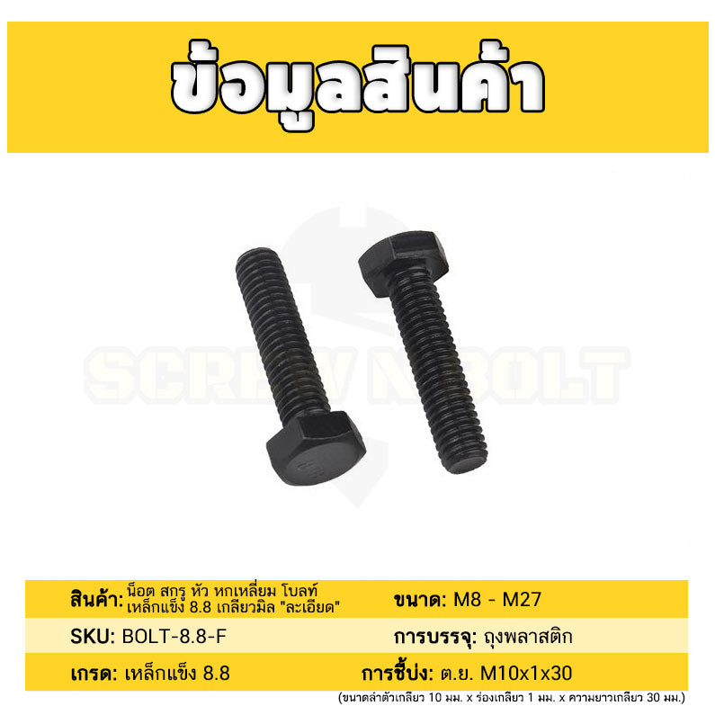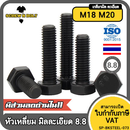 #น็อต สกรู #เหล็กแข็ง 8.8 รมดำ #หัว หกเหลี่ยม โบลท์ #M18 M20
