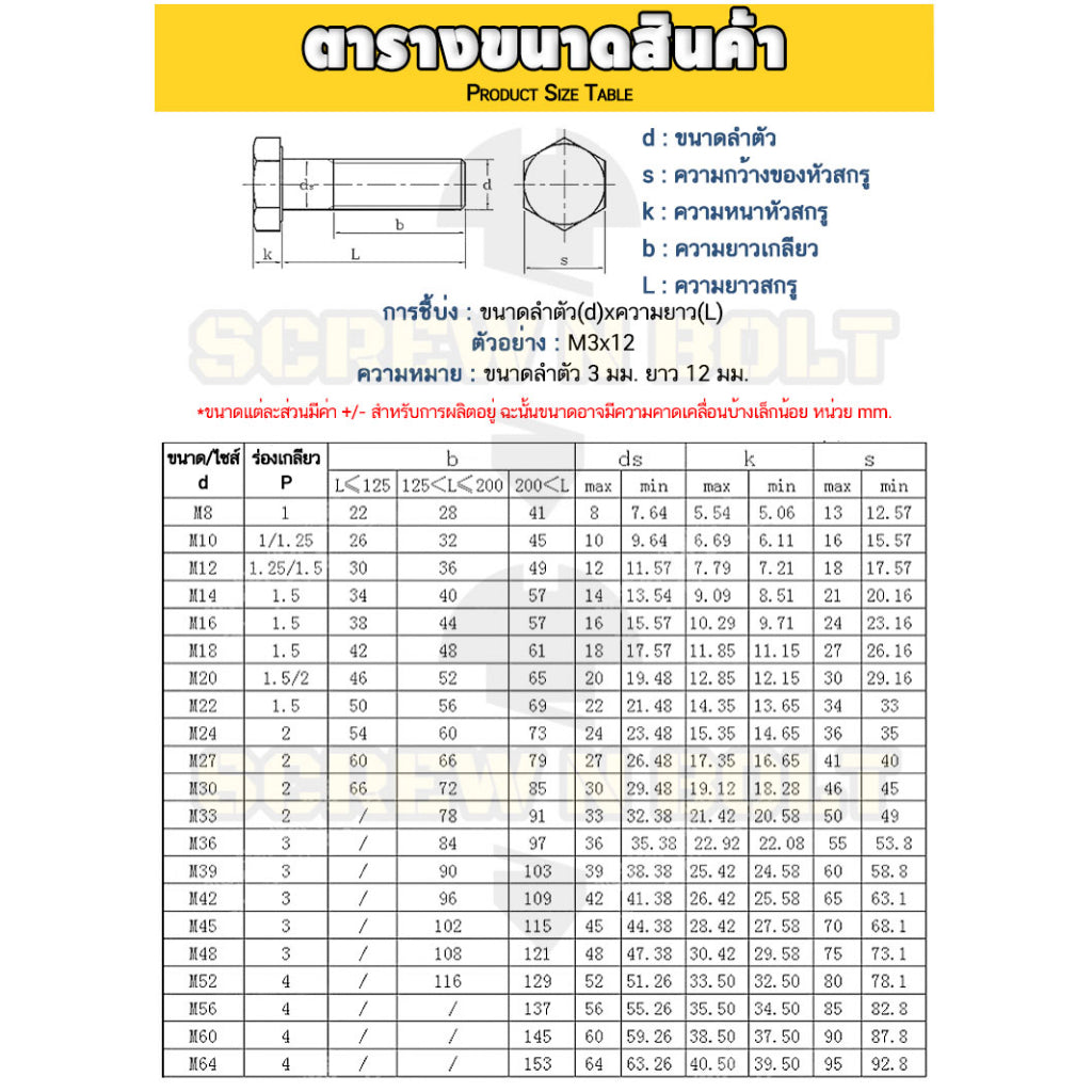⚙ คำแนะนำการวัดขนาดไซส์และความยาวของน๊อตสกรู ⚙