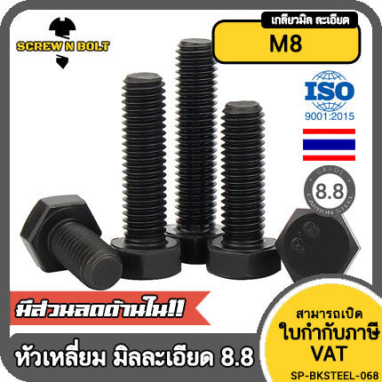 #น็อต สกรู #เหล็กแข็ง 8.8 รมดำ #หัว หกเหลี่ยม โบลท์ #M8