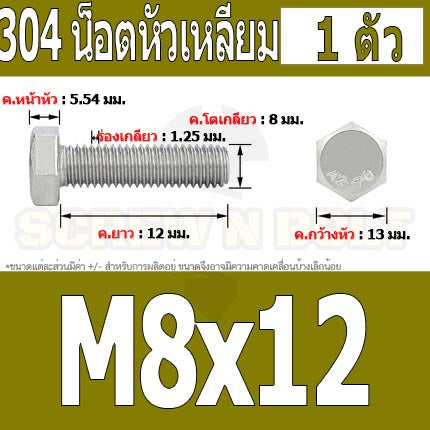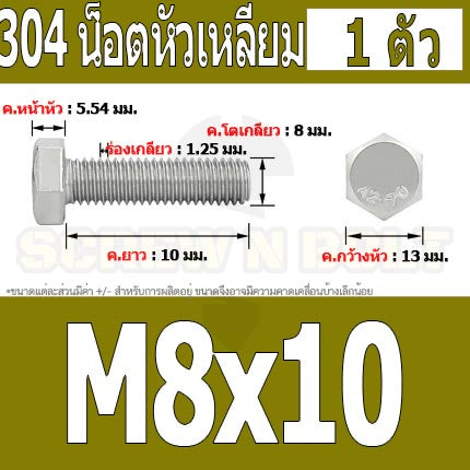 🔍 ชื่อรายการสินค้า : สกรูหัวเหลี่ยม/โบลท์ เกลียวตลอด DIN933 สแตนเลส 304 ไซส์ M8