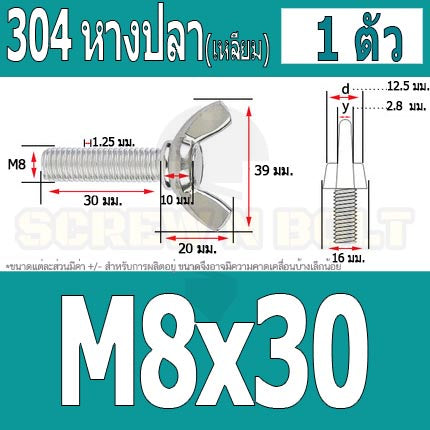 #น็อตสกรู #สแตนเลส 304 #หางปลา #ไซส์ M8
