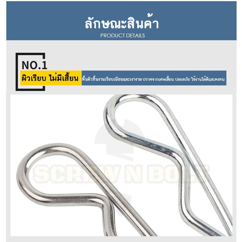 ปิ๊น ตัว R สแตนเลส 304 ปิ้น ตัวอาร์ M1 M2 M2.5 M3 M4 / Hairpin Cotter Snap R Pin SUS304 M1 M2 M2.5 M3 M4