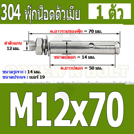 #พุ๊ก #สแตนเลส 304 #หัวน๊อต #ไซส์ M12