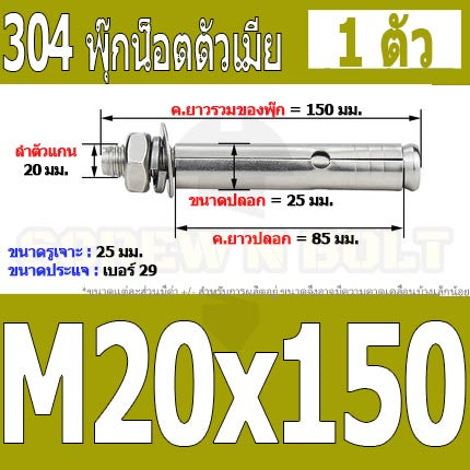 #พุ๊ก #สแตนเลส 304 #หัวน๊อต #ไซส์ M18 M20