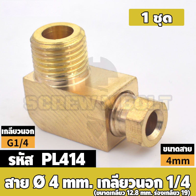 (ยกชุด) ข้อต่อ ล็อคใน ข้องอ เกลียวนอก-ใน ต่อท่อ ต่อสาย ทองเหลือง PL M4 M5 M6 M8 1/4 1/8 / Elbow Tube Fitting, Brass