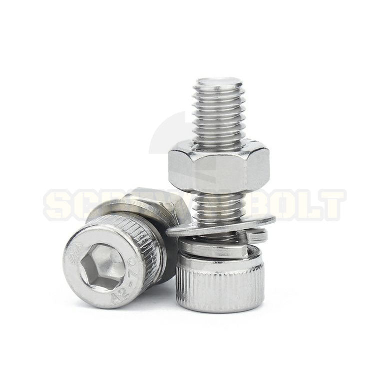 (ยกชุด) น็อต สกรู หัวจม พร้อม แหวน+สปริง+ตัวเมีย สเตนเลส 304 เกลียวมิล M2 M2.5 / (Set) Cap Socket Machine Screw SUS304