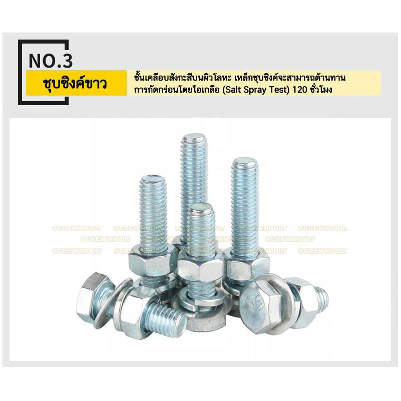 SCREWNBOLT ขออธิบาย..White Zinc Cr3 (ชุบซิงค์ขาว) เป็นวิธีการเคลือบสังกะสี (Zinc Plating) ด้วยไฟฟ้าทำโดยการจุ่มเหล็กกล้าลงในอ่างอิเล็กโทรไลต์ที่มีซิงค์ ไฟฟ้าจะเหนี่ยวนำให้เกิดปฏิกิริยาเคมีระหว่างอิออนในซิงค์ต่อพื้นผิวของเหล็ก ผลลัพธ์ที่ได้คือการเกิดชั้นเคลือบสังกะสีบนผิวโลหะ จะมีความหนาไม่เกิน 20 ไมครอน เหล็กชุบซิงค์จะสามารถต้านทานการกัดกร่อนโดยไอเกลือ (Salt Spray Test) 120 ชั่วโมง