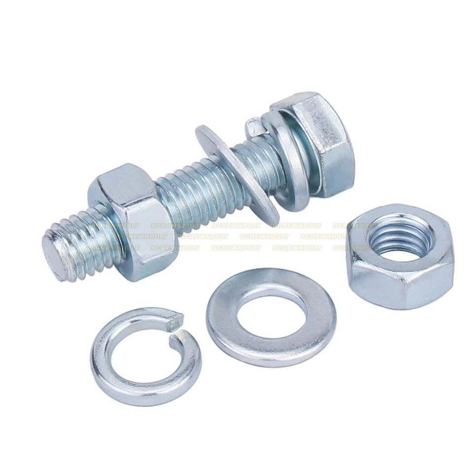 #(ยกชุด) น็อต สกรู #เหล็ก 8.8 ชุบ ขาว/ฟ้า #หัว หกเหลี่ยม แหวน+สปริง+ตัวเมีย #M14 M16 M18
